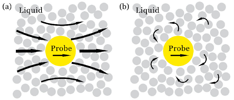 长久以来,一个有趣的实验现象一直困扰着科学家——在过冷流体中,分子的布朗运动并不遵循斯托克斯-爱因斯坦方程。在流体温度接近玻璃化转变温度时,探针分子的扩散率乘以流体的粘性系数再除以温度所得到的量并非常数,其会比在高温时有几个数量级的增加。更多的实验报道证实,这个量的增幅除了与温度相关外,还与探针分子和流体分子的大小有关。