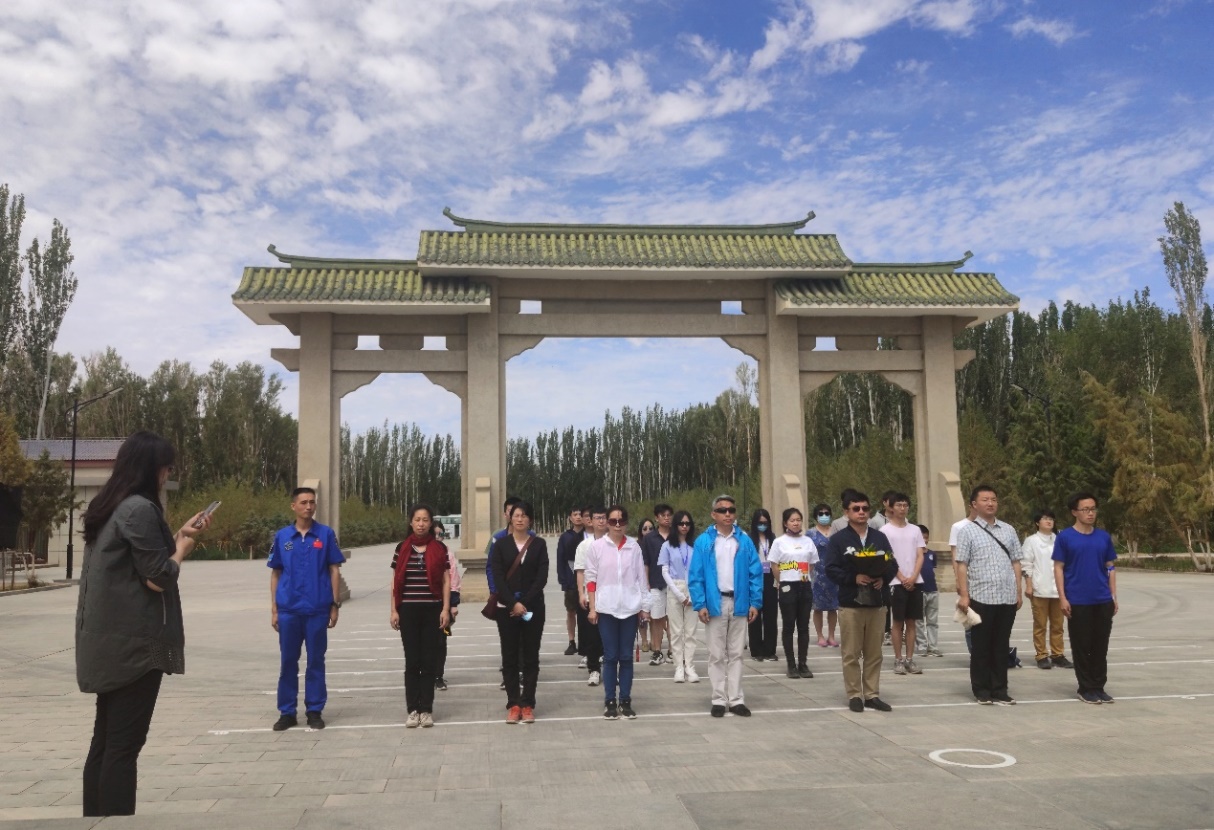 实践支队还来到东风革命烈士陵园,缅怀为中国航天事业牺牲的革命烈士。这座陵园里长眠着700多名为中国的航天事业献出宝贵生命的革命先烈,聂荣臻元帅的部分骨灰也安放在这里。航院党委副书记葛东云老师致悼词,陈海昕老师代表实践师生向革命烈士敬献花束。前辈们通过不懈努力,创造了众多辉煌的历史。如今,‘接力棒’到了我们手中,作为年轻一代必须坚定信念,肩负起建设科技强国的时代重任,为祖国繁荣富强而努力奋斗。”