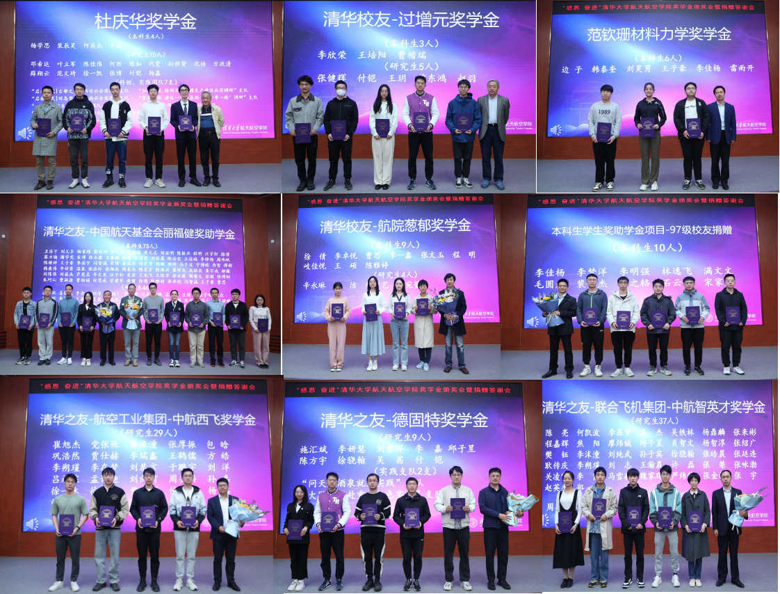 4月28日上午,清华大学航天航空学院举办“感恩·奋进”奖学金颁奖会暨捐赠答谢会。在本年度院级奖助学金评定中,航天航空学院共280余人次分获杜庆华奖学金、范钦珊材料力学奖学金等九项院设奖学金荣誉项目,涵盖本、硕、博全培养层次,50余名获奖同学作为代表现场参会。活动由航天航空学院副院长陈海昕主持。