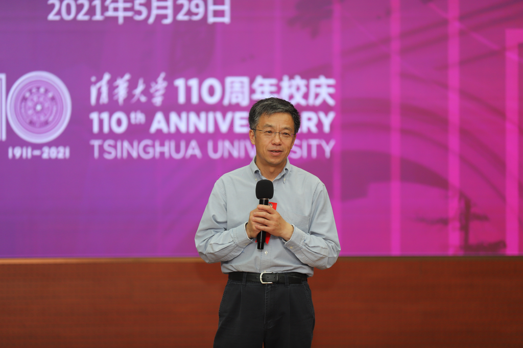 时值清华大学110周年校庆,清华大学航天航空学院(以下简称:航院)于5月29日在蒙民伟科技大楼M层报告厅举行2021年航院校友会国防生返校活动。清华大学校务委员会副主任、校友总会副会长史宗恺,保密办公室主任熊剑平,武装部副部长、国防教育与人才培养办公室副主任邓宇,航院原党委书记庄茁、李俊峰,现任党委书记曹炳阳、副书记葛东云,中国航空工业一飞院副院长宁宇,航院党委组织员王锡瑞,国防班班主任任革学、邱信明、杜建镔、肖志祥以及任课教师代表陈海昕等多位老师与39位国防生校友代表齐聚一堂,共贺母校生日快乐。