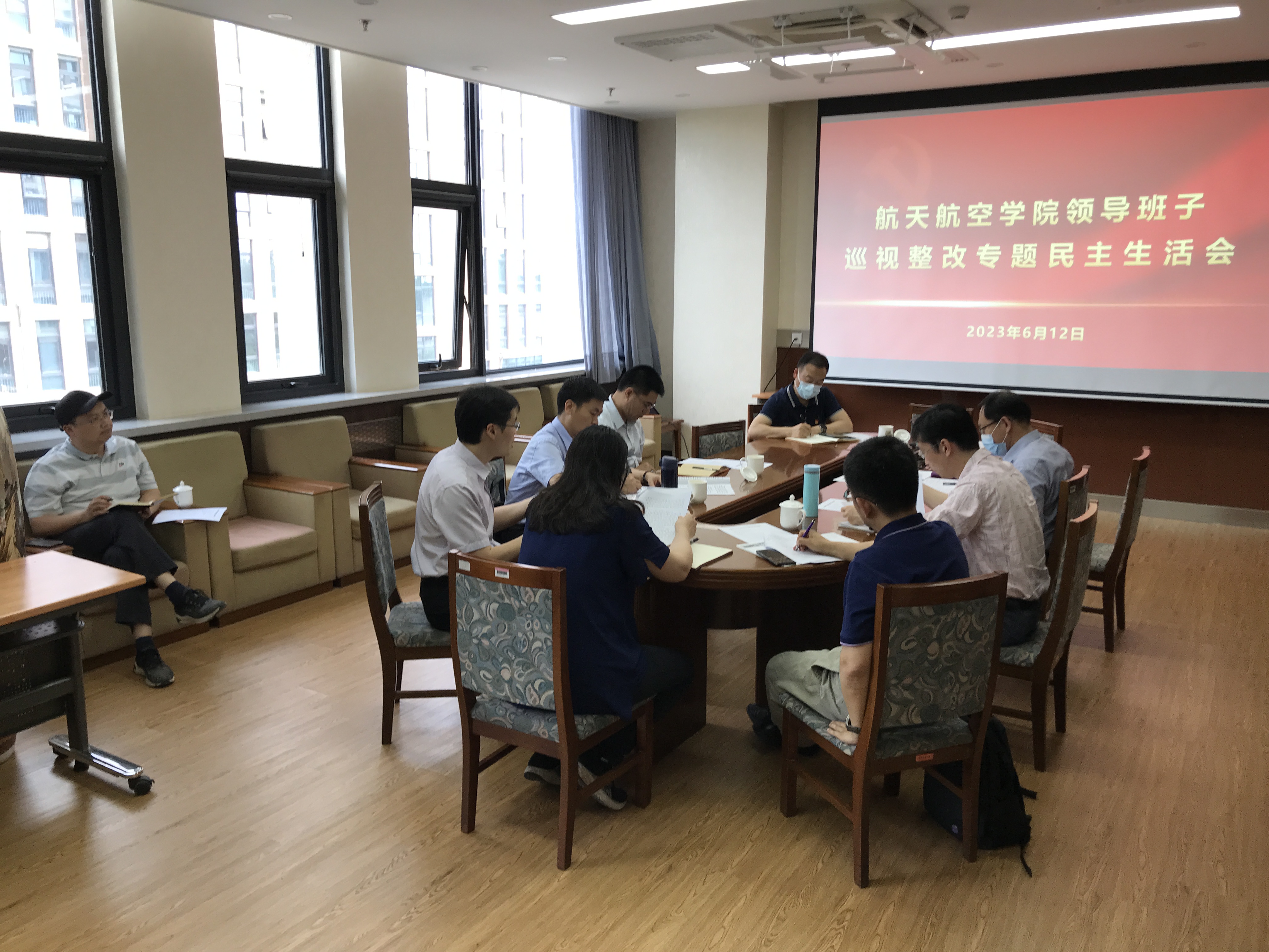 6月12日下午,航院召开教育教学巡视整改专题民主生活会,全体领导班子成员参加,会议由航院党委书记王兵主持。校党委组织部副部长徐明星,纪检监察机构第一纪检监察室何勇列席会议。