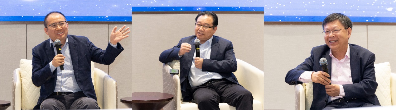 圆桌讨论环节,王浩文、张昌武与经管学院创业创新与战略系主任程源,领导力与组织管理系教授陈国权、迟巍,清华大学企业家协会主席、清科集团创始人、董事长兼CEO倪正东,共同探讨如何推动科技应用和产业发展,实现科技与管理的充分融合。