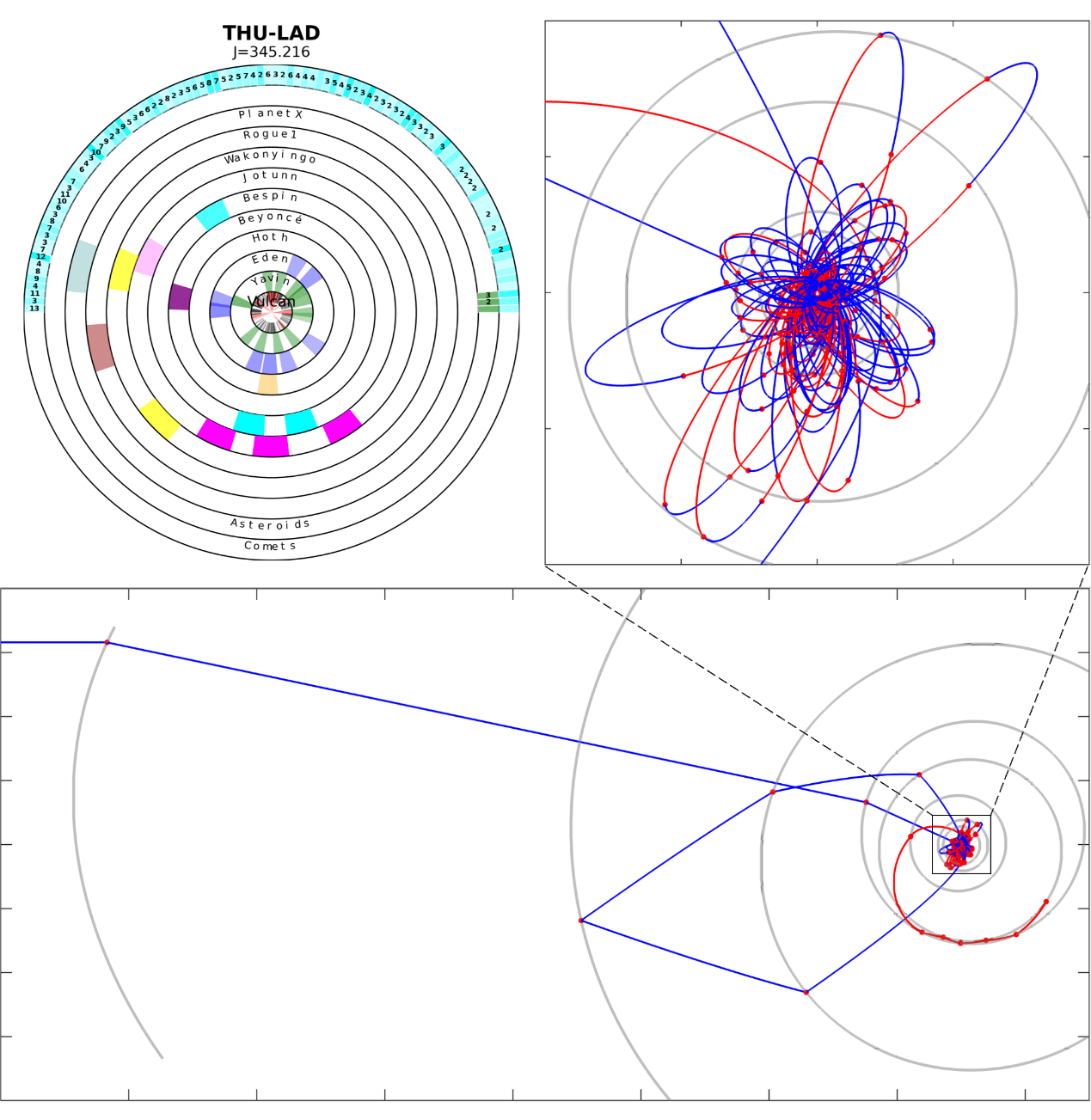 本次比赛共吸引来自全球的101支队伍参赛,以“人类首次无人飞船探测系外行星系统”为主题,要求参赛者设计飞船的飞行轨迹,尽可能多且分散地飞越探测恒星Altaira的310颗行星、矮行星、小行星和彗星,最大化科学探测价值。飞船仅依靠行星引力和太阳帆光压力进行变轨,赛题涉及先进推进方式下的复杂多目标探测轨迹优化难题,具有系外探测和移民的前瞻性研究价值。