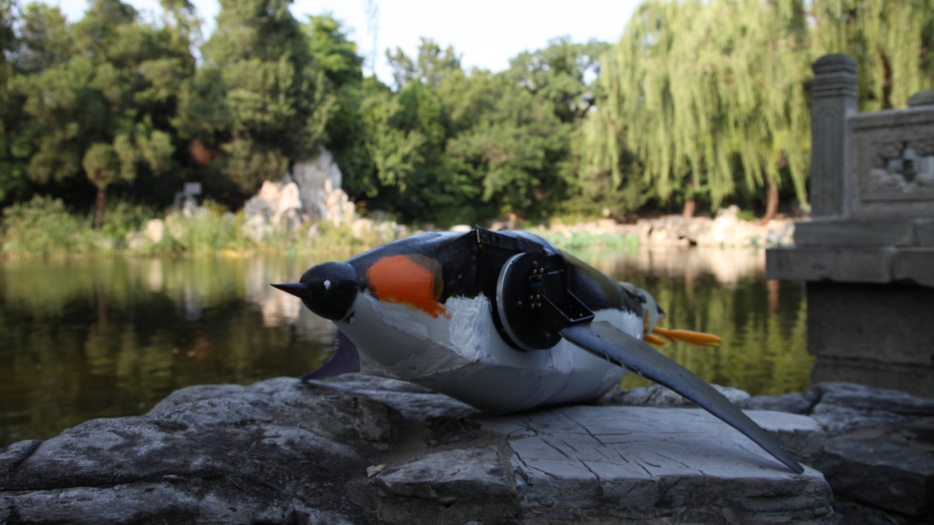 仿生企鹅组创新设计制作的一款扑鳍式推进的仿生机器企鹅,属于国内首款企鹅样机。该组在实现直游、变速、转弯、倒游、上浮下潜等多种游动模态的基础上,实现了机动性的提高、防水工艺的优化以及中枢模式发生器(CPG)控制的创新目标,荣获启航创新实践营“团队金奖”。