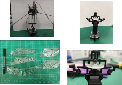 蜂鸟是世界上最小的鸟类,飞行方式和大多数鸟类不同,通过前后高频率的扑翼来实现飞行和空中悬停,这也是类蜂鸟飞行器拟实现的设计目标。今年本项目在去年的项目基础上进行了改进和创新,主要目标为优化机翼设计、实现轻量化和尝试绳传动机构。在机翼设计方面,项目组选择了更为合适的膜材料,使得单片机翼质量更轻,柔性更好。同时,项目组设计了多种机翼形状,并分别测试其升力。结果显示不同机翼的最大升力都是10g,且部分机翼明显未达到最高扑动频率,项目组判断原因是电机马力不足。在机架设计方面,项目组设计了两种方案,相比上届成品,总质量分别下降了36%和51%,实现了轻量化的目标,但可惜升力因为电机问题未达到预期,无法起飞。项目组所设计的两个方案都采用了绳传动机构,并测试了相同电压下连杆机构和绳传动机构的扑动频率,发现绳传动机构频率要快将近一倍,证明了绳传动机构的优越性。