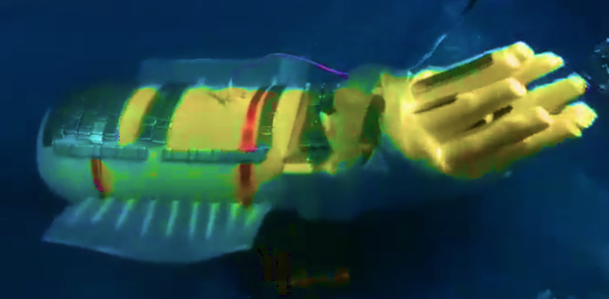 仿生乌贼组创新设计制作了一款鳍波动与喷射融合推进的仿生机器乌贼,实现了基于胸鳍控制的直行、转弯、倒游、上浮下潜的基本运动模式以及基于水泵辅助的高机动推进模式。