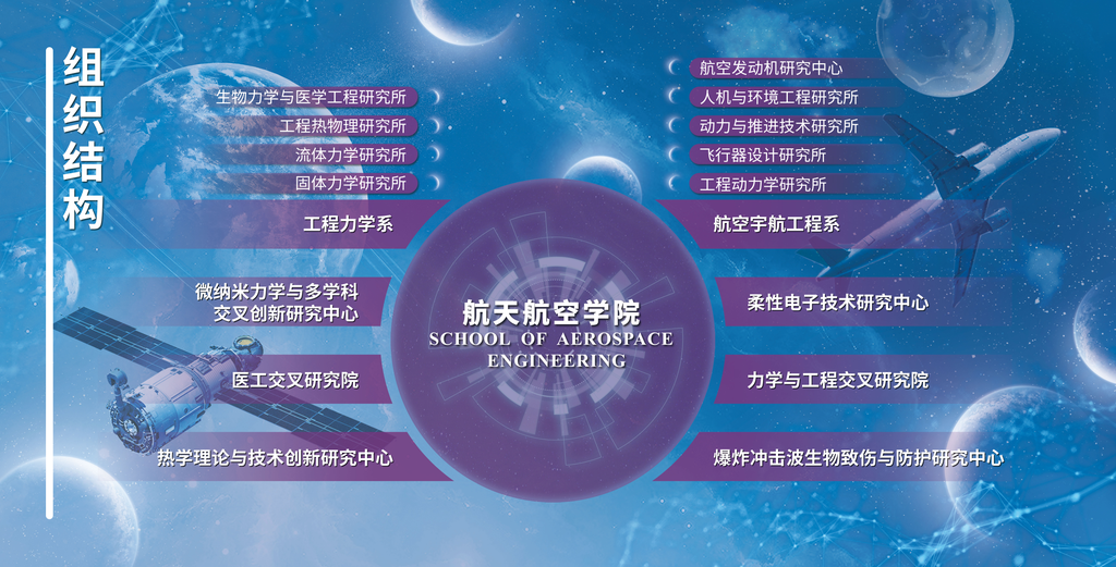 清华大学的航空与力学学科起源于上世纪 30 年代,1938 年成立航空工程学系、1958 年为了我国的力学与航天航空事业培养专门人才成立了工程力学数学系。本世纪,为适应我国对航天航空领域高素质人才培养和战略高技术发展的迫切需求,进一步集成并发挥我校多学科综合优势,于2004 年复建航天航空学院(简称航院)。学院拥有国际一流的力学、工程热物理学科和发展中的航空宇航科学与技术学科。人才培养方面定位于建设高水平复合型航空航天人才培养基地、为国家的航空航天事业及工程力学等相关领域培养高素质、高层次、多样化、创新性的骨干人才;科研方面以国家重大战略需求为牵引,充分发挥各学科优势,服务国家和社会。