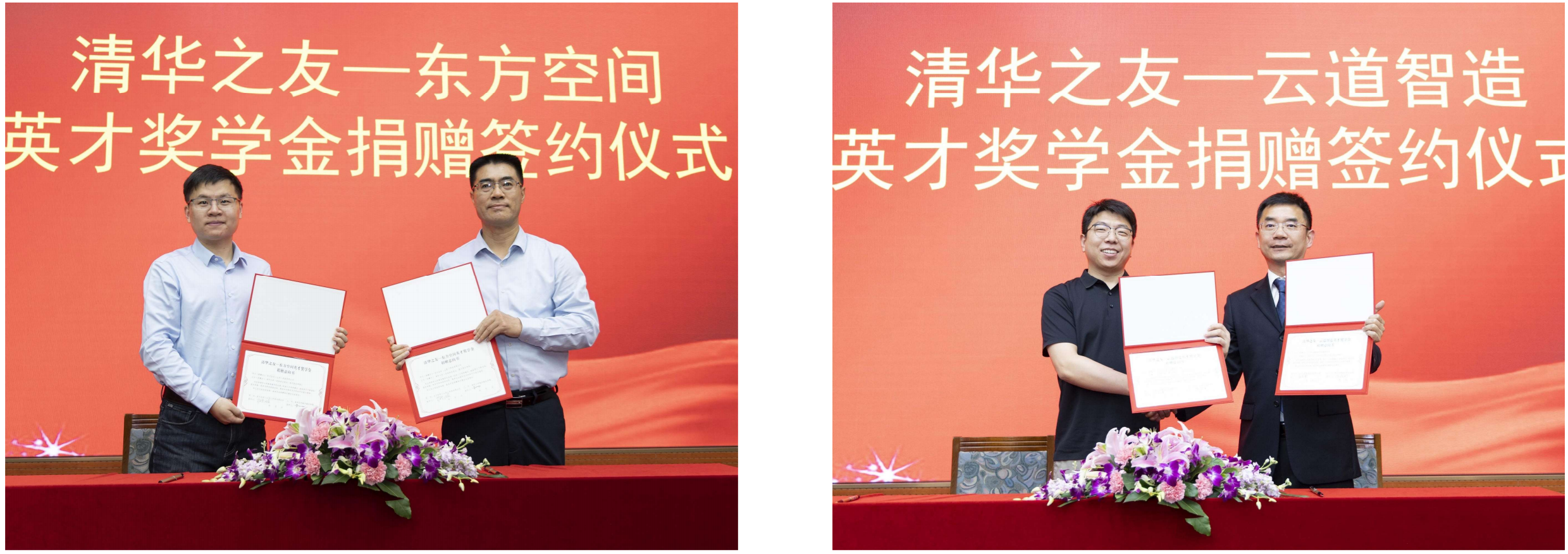为了支持清华大学教育教学发展,促进人才培养事业,鼓励学子奋进,追求卓越,东方空间(山东)科技有限公司、北京云道智造科技有限公司与航天航空学院进行奖学金捐赠签约仪式。