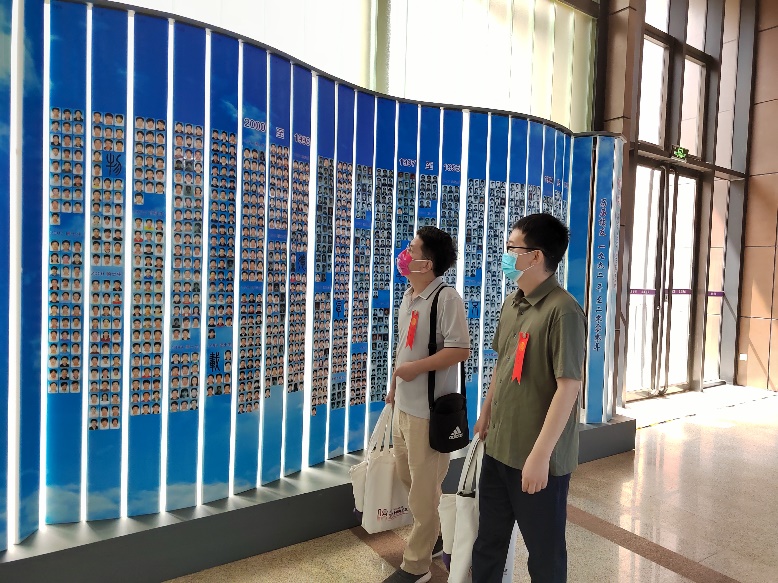 图为 返校校友参观航院校友照片墙