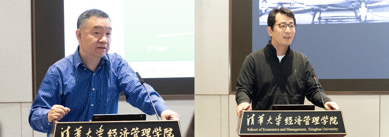 圆桌讨论环节,王浩文、张昌武与经管学院创业创新与战略系主任程源,领导力与组织管理系教授陈国权、迟巍,清华大学企业家协会主席、清科集团创始人、董事长兼CEO倪正东,共同探讨如何推动科技应用和产业发展,实现科技与管理的充分融合。
