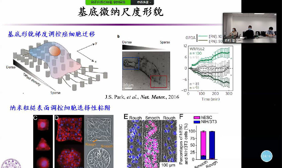 邵玥首先介绍了力学微环境在细胞生物工程中的应用背景与关键科学问题,回顾了力学微环境对细胞功能调控的案例,总结了构建工程化力学微环境的常见手段。在此基础上,展示了干细胞技术结合工程化力学微环境在合成胚胎学这一新兴方向上的应用,包括诱导干细胞模拟着床期人类胚胎发育及神经胚期神经管发育,以及基于类胚胎和类器官的生物芯片制备与应用。基于上述方法,邵玥介绍了力学微环境对生命初期胚胎发育过程的调控机制,并对该方向近期发展进行了探讨。此外,邵玥简要介绍了由成体干细胞构建的上皮类器官,及其在模拟组织损伤与相应防治研究上的应用。