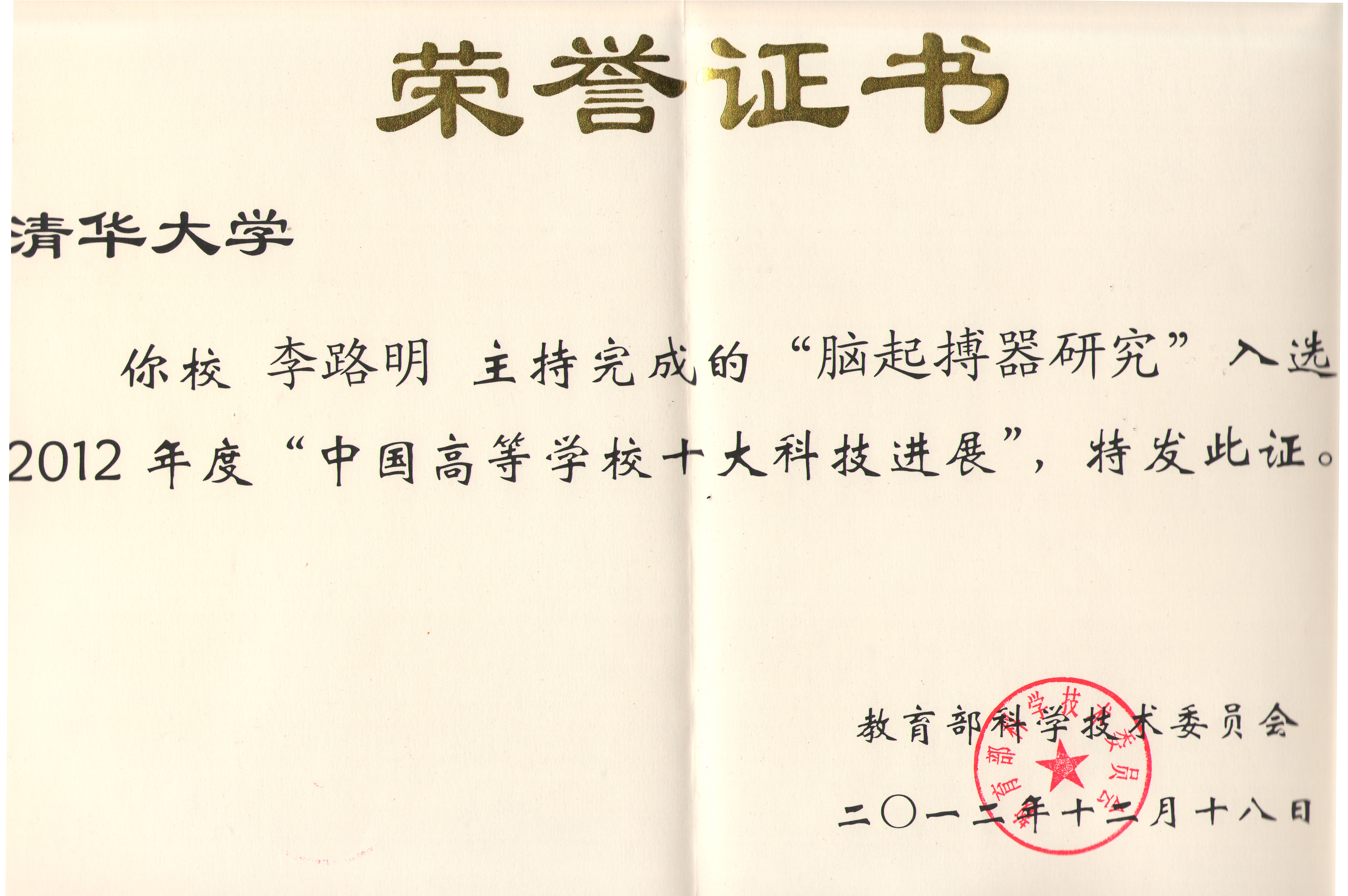 李路明教授团队的“脑起搏器研制”入选“2012年度中国高等学校十大科技进展”,神经调控技术国家工程实验室已授牌。
