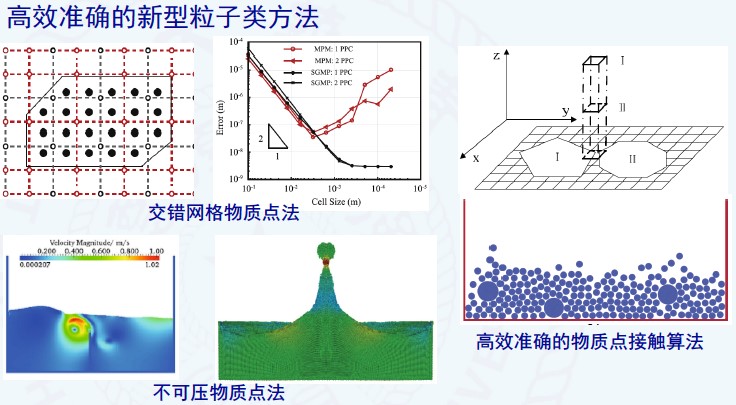 1. 提出了杂交/耦合/自适应物质点有限元法,建立了物质点无网格法与有限元法的贯通理论体系,实现了复杂结构体的高保真计算和准确高效的材料局部化破碎模拟。
